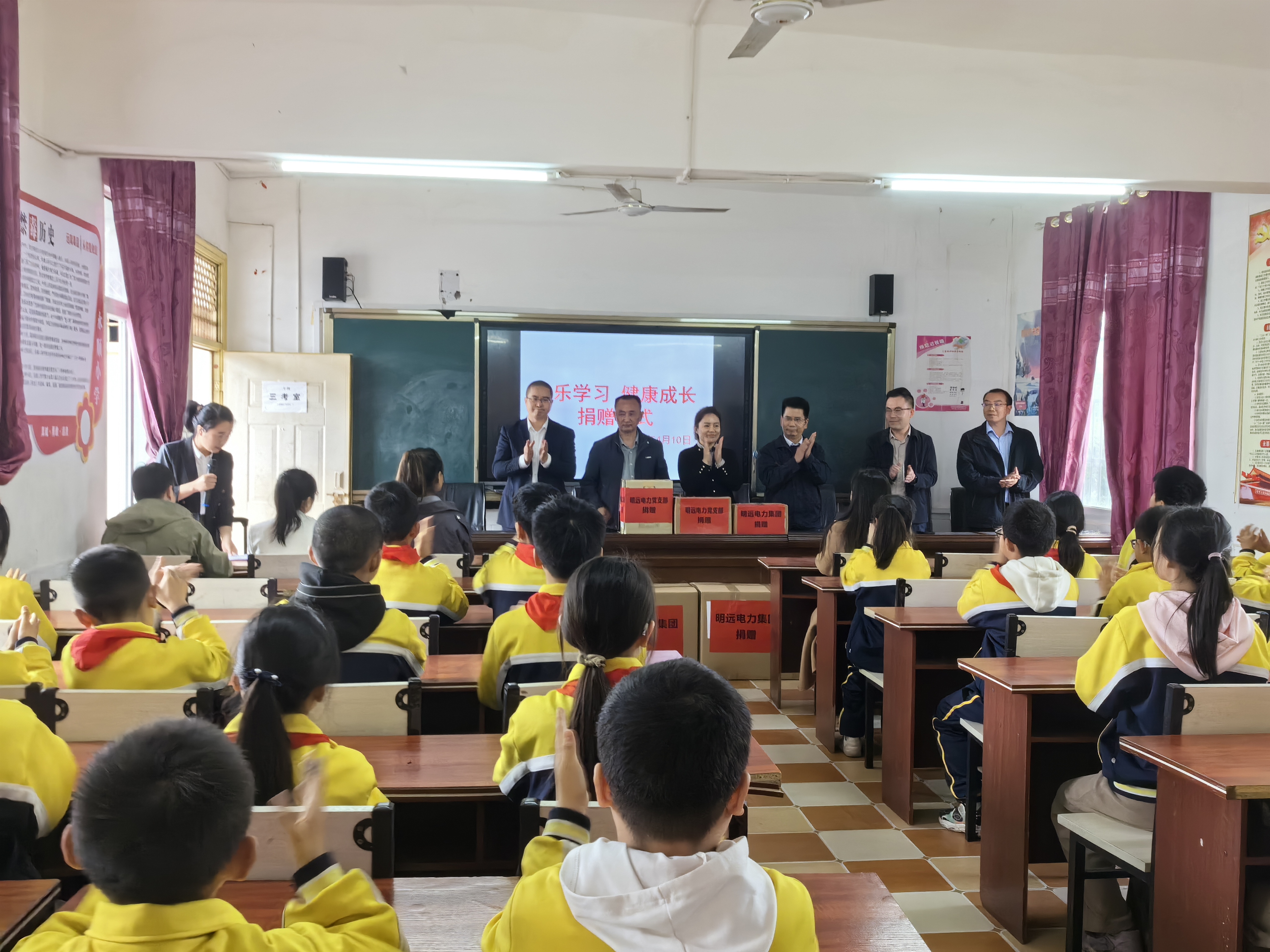 4月10日,川投集团资阳燃气电站新建工程220千伏送出工程项目建设、施工单位一行赴安岳县永顺小学开展“快乐学习 健康成长”爱心捐赠活动。资阳气电副总经理严天元,明远电力集团党总支部书记、董事长黄心宁,安岳县永顺镇镇长李永升、永顺小学校长蒋志辉、副校长唐琴及师生代表参加捐赠活动。