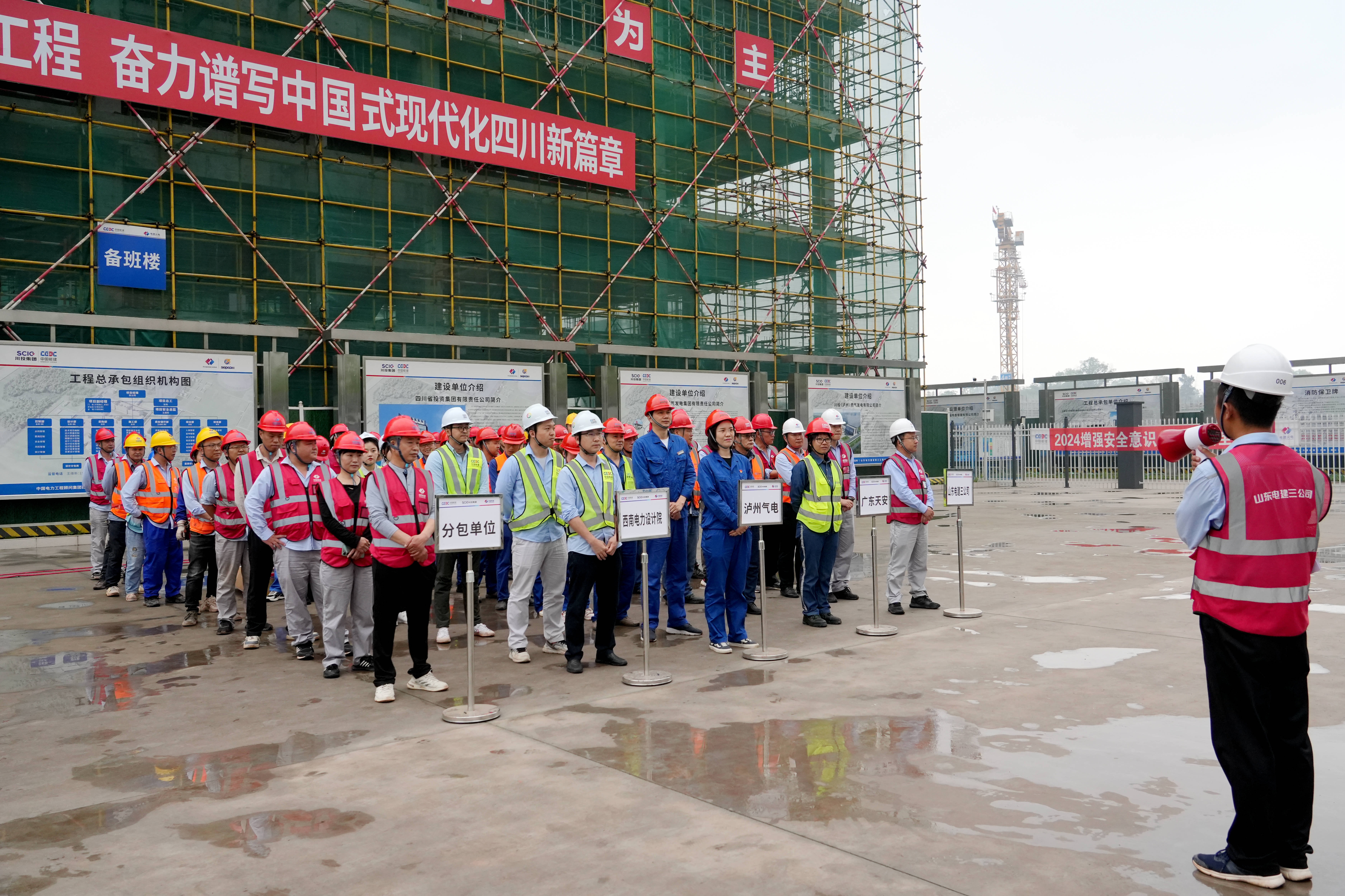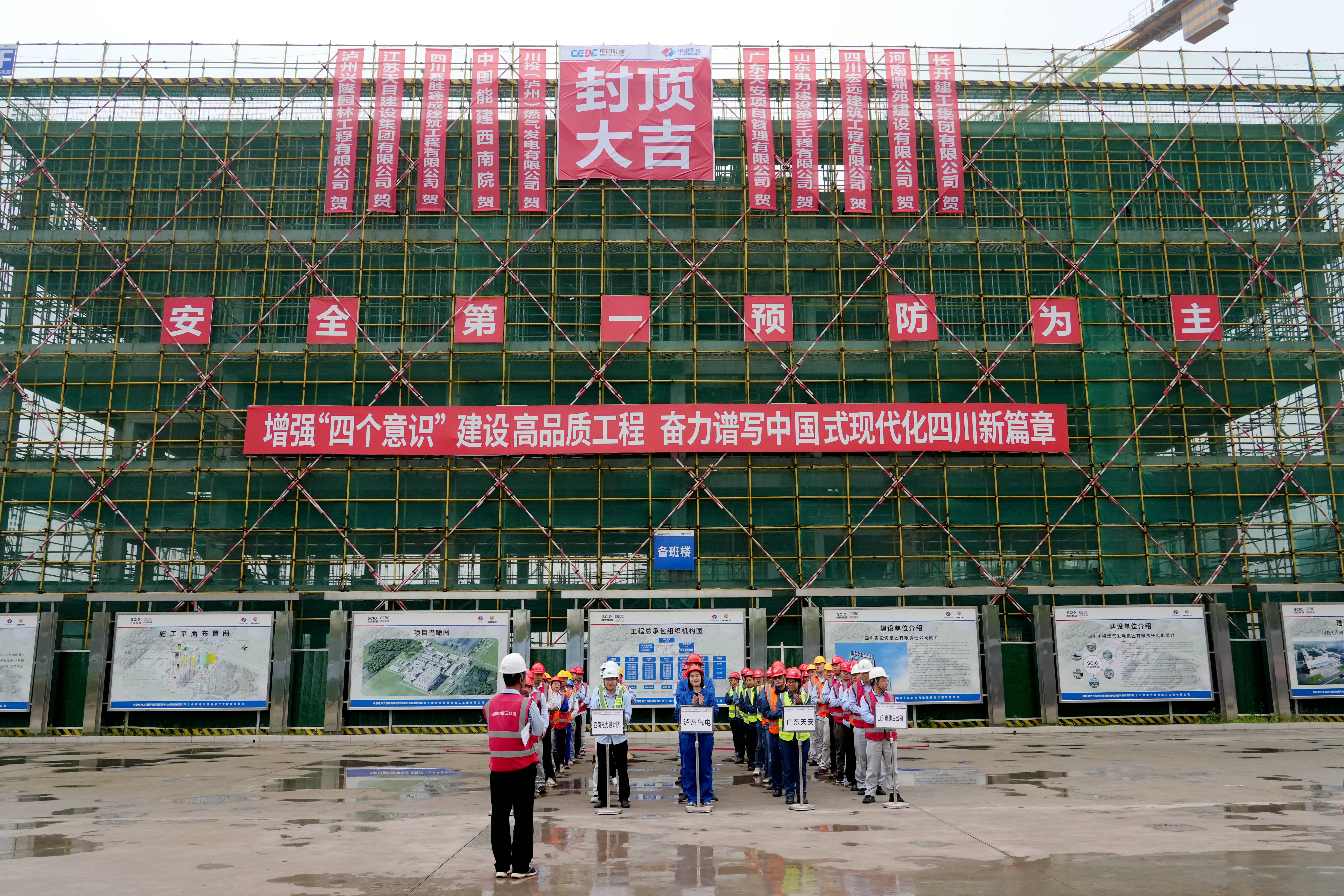 4月18日9时,员工备班楼封顶仪式在备班楼后的项目入场处举行,泸州气电、川投泸州天然气发电项目监理项目部、总承包项目部、施工项目部、分包单位相关人员参加仪式。