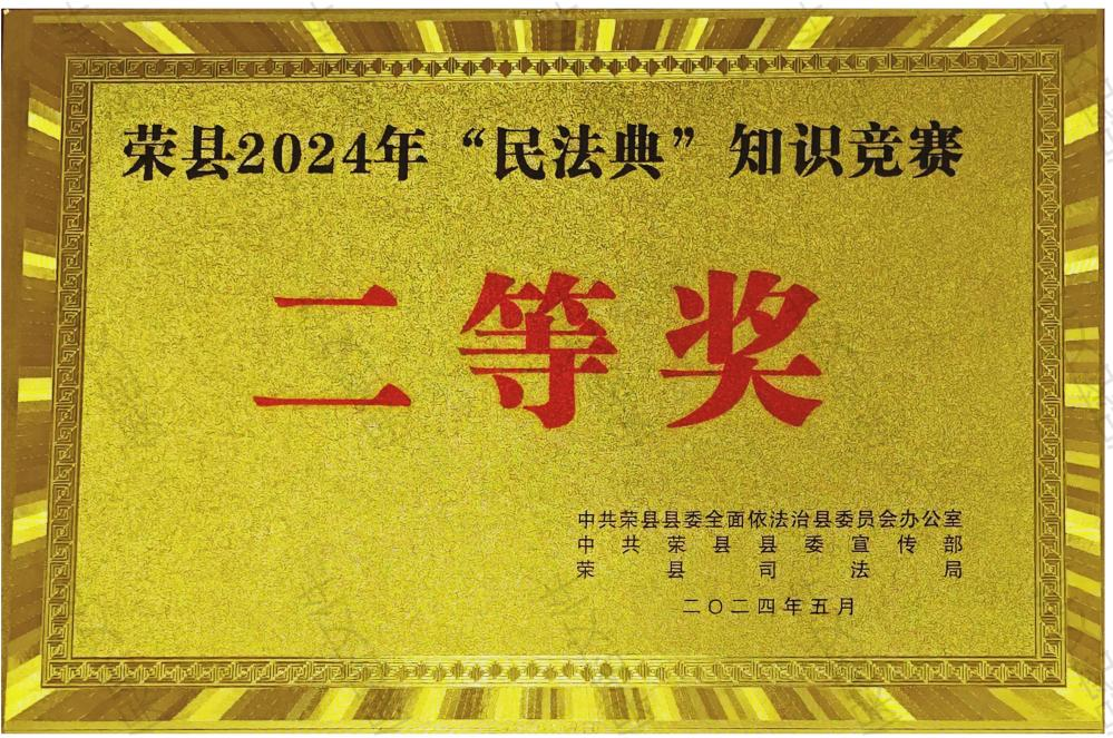 近日,为贯彻落实习近平总书记关于“法治是最好的营商环境”重要论述,进一步加强对“民法典”的学习教育,中共荣县依法治县委员会办公室、县委宣传部、县司法局联合组织开展“民法典”知识竞赛活动。全县40余支参赛单位历经初赛、复赛,层层选拔,8支参赛队伍进入决赛。公司团支部代表公司进入决赛并荣县川燃荣获荣县2024年度“民法典”知识竞赛二等奖。