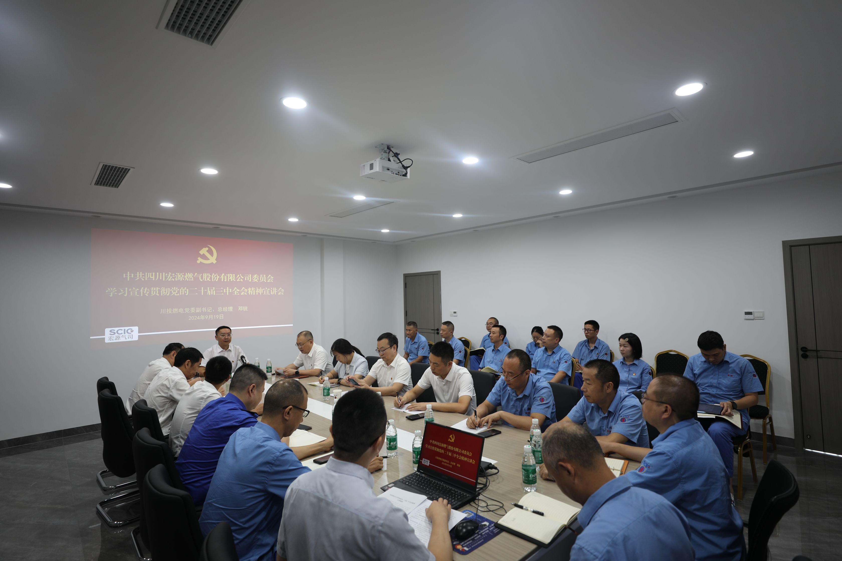 为进一步深入学习贯彻党的二十届三中全会精神,推动全会精神在宏源气司落地生根,9月19日,川投燃电党委副书记、总经理邓锐赴宏源气司经开区LNG油气合建站开展党的二十届三中全会精神宣讲。