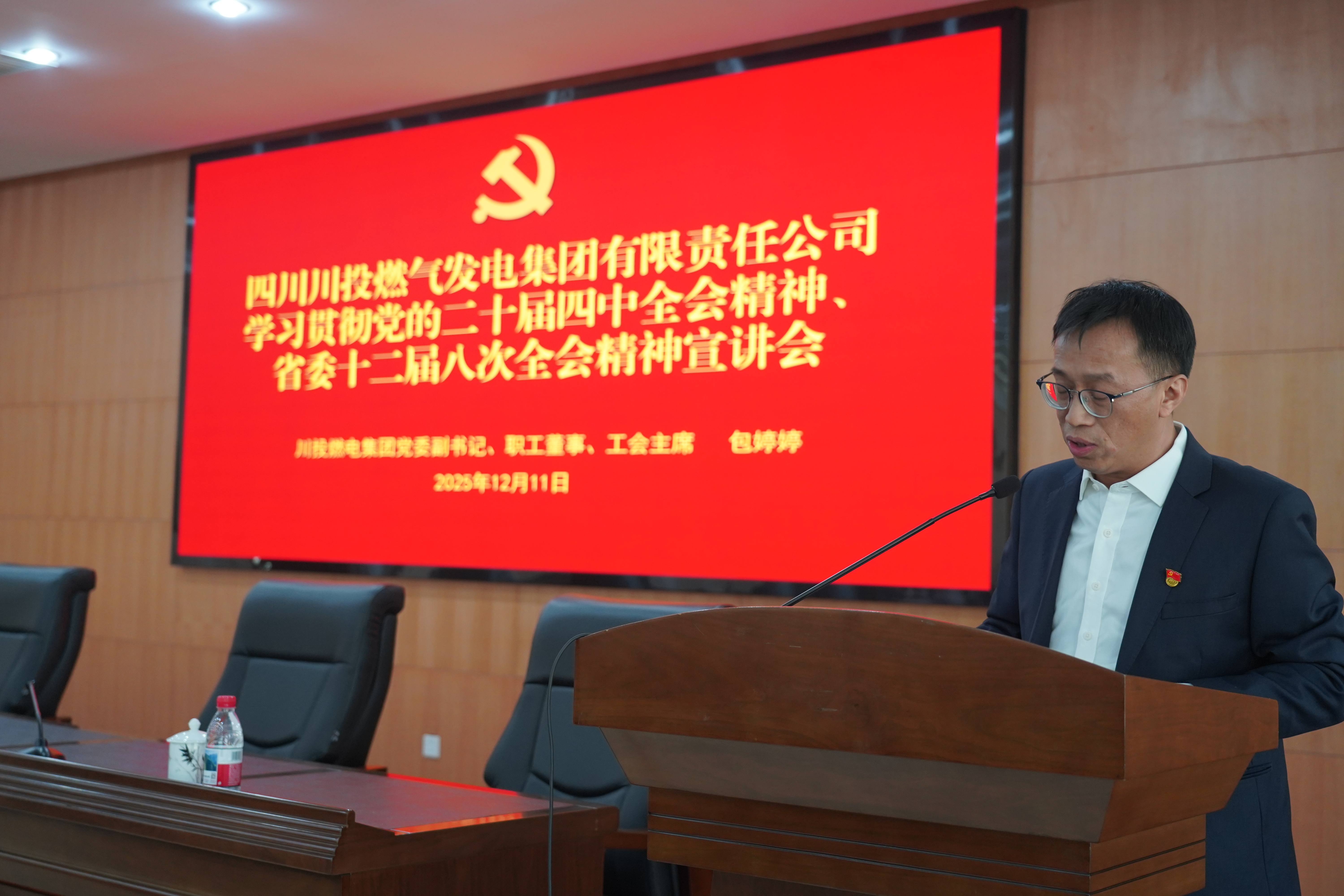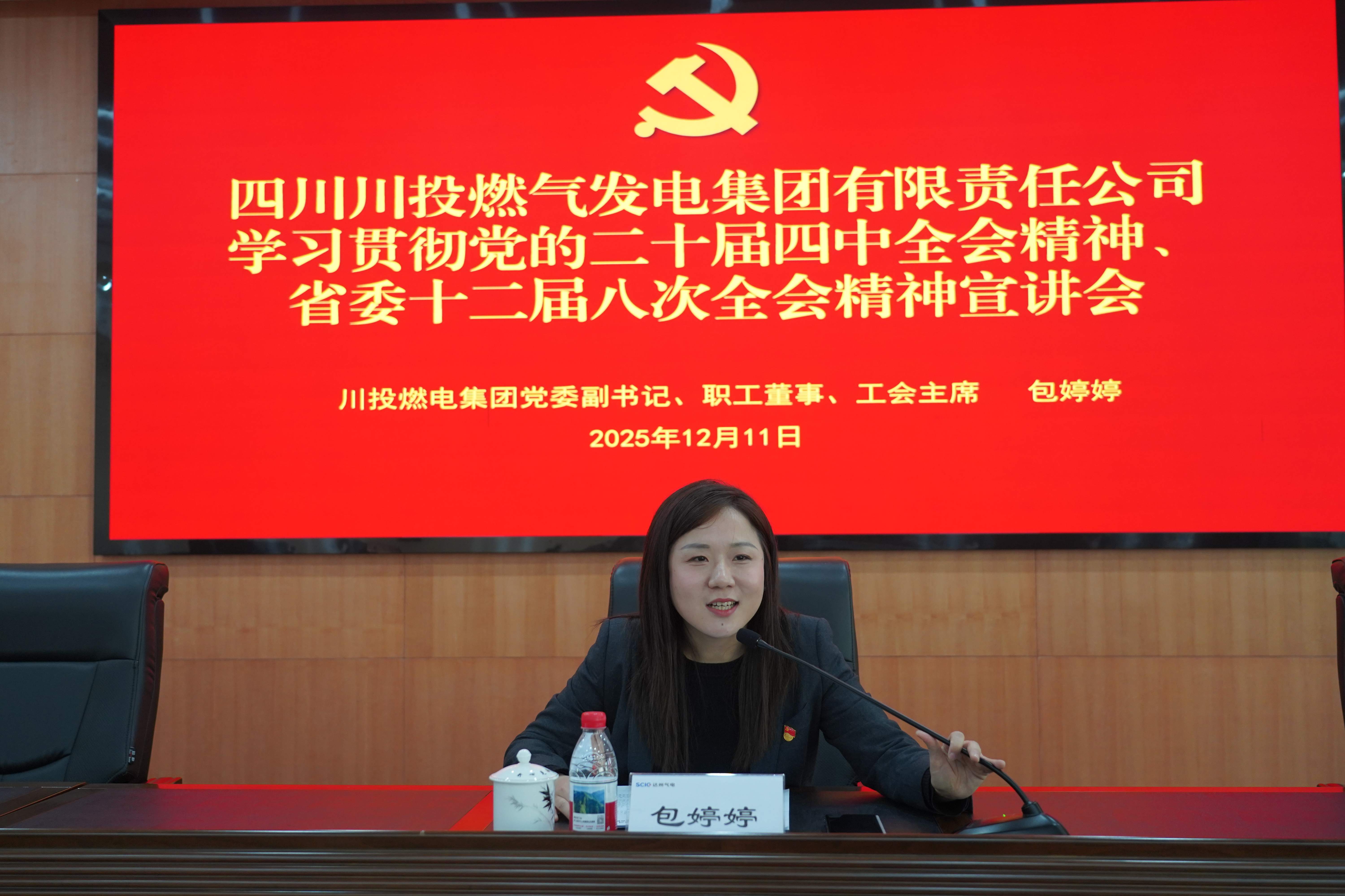 为深入学习宣传贯彻党的二十届四中全会及四川省委十二届八次全会精神,切实把思想和行动统一到党中央及省委决策部署上来,12月11日,川投燃电党委副书记、职工董事、工会主席包婷婷赴达州气电开展专题宣讲,引领基层干部职工深刻领会全会核心要义,推动全会精神在生产经营一线落地生根、见行见效。达州气电全体党员、入党积极分子共计60人参加宣讲会。